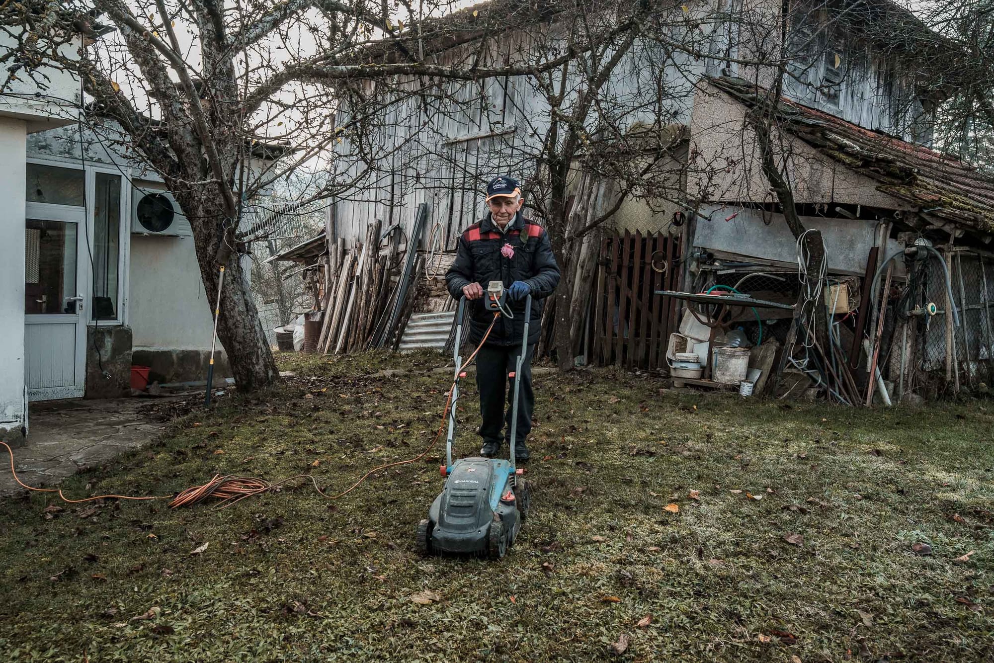 Точно като съзнанието, и тялото му служи завидно добре. Вече в двора му, щом затваря портата с висящия некролог на съпругата си, починала на 66 години през 1999 г., буквално захвърля торбата и измъква косачката от плевнята. Бърза да я включи, за да ни покаже навръх рождения си ден как поддържа поляната пред къщата в такова състояние. Съседи свидетелстват, че са го виждали и как се катери да чисти улуците – и са му се карали, че трябва да се пази. Все едно е възможно да укротиш ищаха на 102-годишен човек да живее активно!